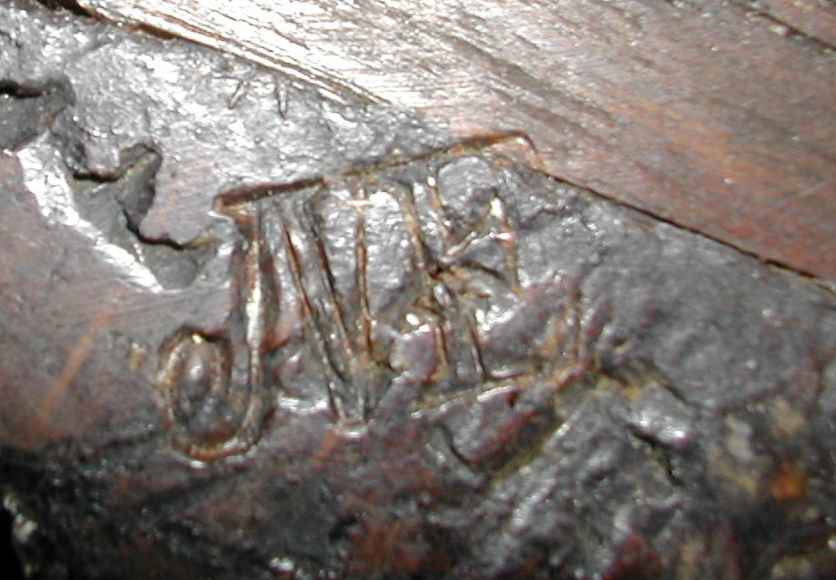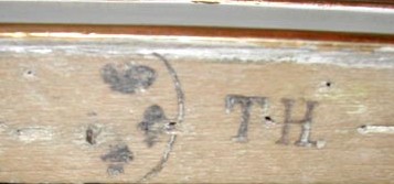 - Estampilles multiples. Si le menuisier faisait une mauvaise frappe, il renouvelait sa marque au même endroit ou juste à côté. Il pouvait aussi, pour attirer l'attention du doreur, répéter sa frappe à plusieurs endroits.