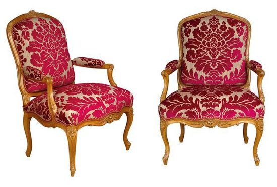 They are covered with damask, velvet crimson or white, Utrecht velvet, fabrics of Persia, sometimes even leather. The Beauvais manufactory, under the able direction of Oudry (1734), is a specialty tapestries in shades of soft and pleasant, to these beautiful seats.