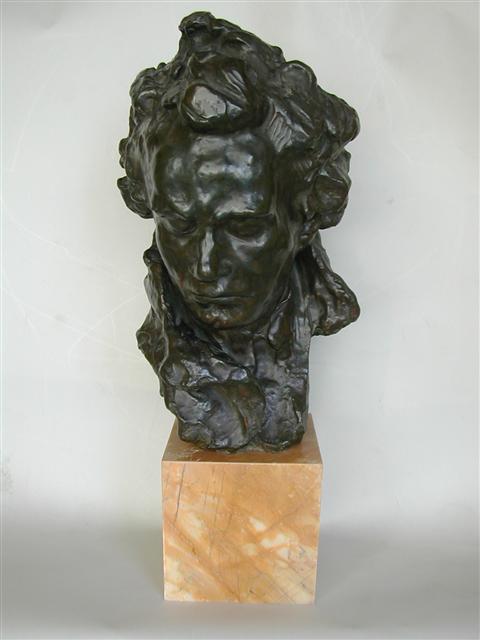 This sculpture of a Beethoven bust is remarkable in the treatment of hair, upper garments and face of Beethoven.