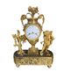 Une pendule vase en bronze ciselé et doré flanquée d'un amour jardinier.Elle repose sur un socle en bronze doré orné d'une frise sur le thème des petits amours jardiniers.
