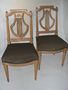 Une paire de chaises à dossier lyre, en bois naturel mouluré et sculpté de perles et raies de coeurs;